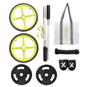 SUITABLE FOR HOME USE - AXLE's weightlifting barbell wheels have air-filled rubber tires that won't cause damage to your floor. And when fully collapsed will easily fit into any wardrobe or dresser.